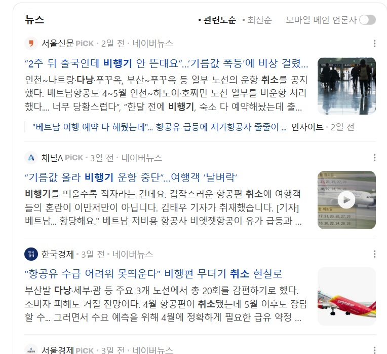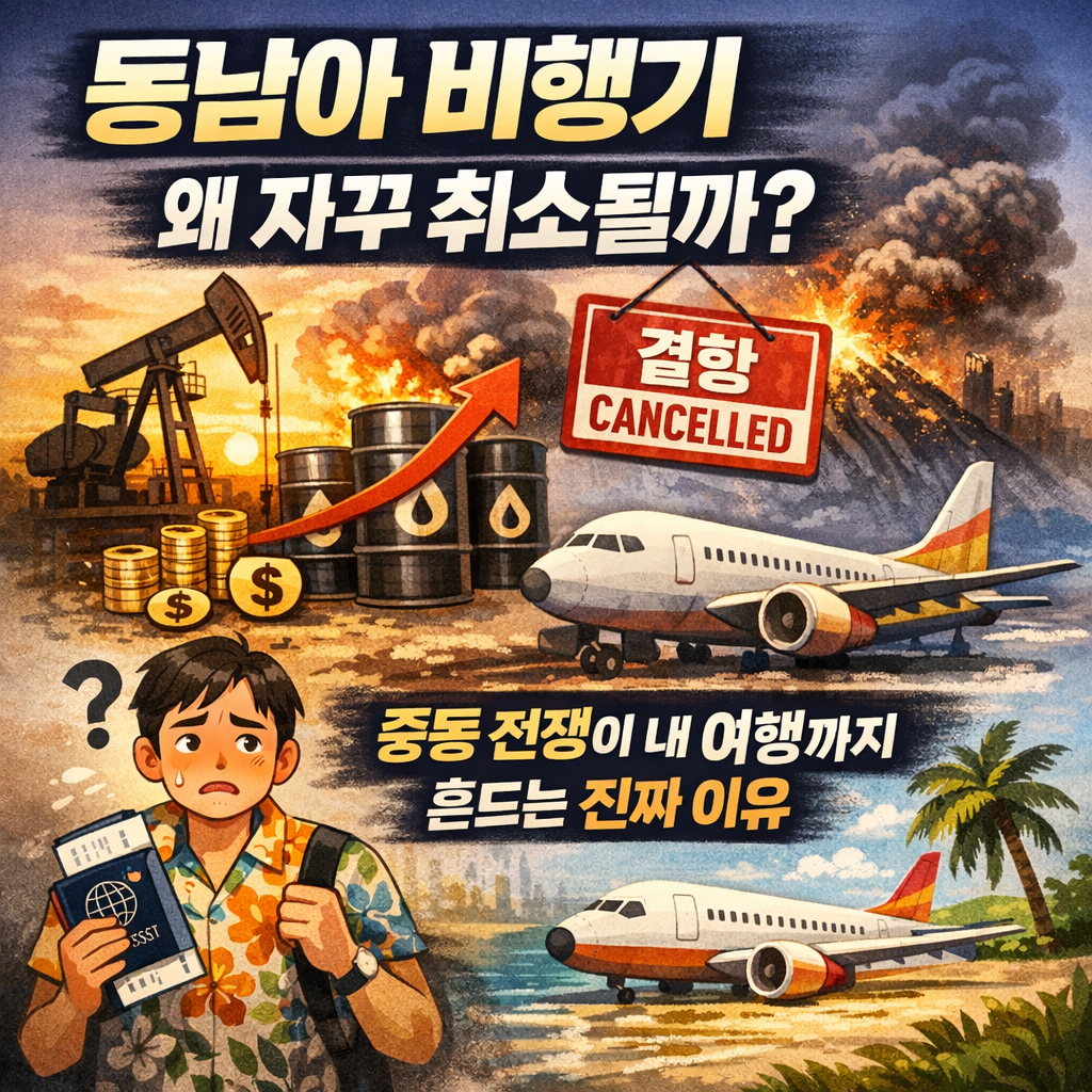 지금 동남아 비행기 취소는 유가 상승 하나의 문제가 아니라, 항공유 공급 불안과 항공사 수익성 악화가 동시에 겹친 결과라고 이해하시면 가장 정확합니다.