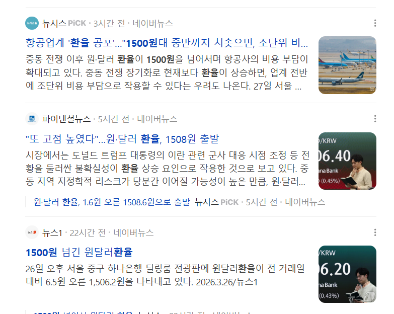 최근 기사에서도 환율 1500원대가 외국인 증시 복귀를 막는 장애물로 언급됐고, 3월 26일에는 외국인이 코스피를 약 3조원 순매도했다는 보도도 나왔습니다. 고환율이 길어질수록 외국인 수급 부담이 커질 수 있다는 해석이 반복해서 나오고 있습니다.
