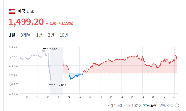 - 3월 20일 원/달러 환율은 1,500.6원으로 마감했고, 이틀 연속 1,500원대를 기록했습니다.